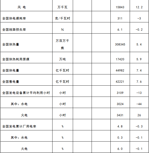 全國電力工業(yè)統(tǒng)計(jì)數(shù)據(jù)一覽表