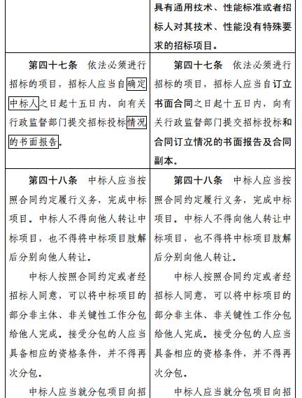 《中華人民共和國(guó)招標(biāo)投標(biāo)法》修改前后對(duì)照表