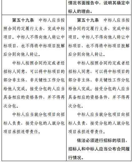 二、第五十九條增加一款,作為第四款:“依法必須進(jìn)行招標(biāo)的項(xiàng)目,招標(biāo)人和中標(biāo)人應(yīng)當(dāng)公布合同履行情況?!?/p>