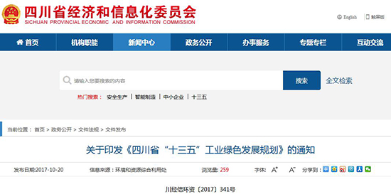 四川省出臺了《四川省“十三五”工業(yè)綠色發(fā)展規(guī)劃》