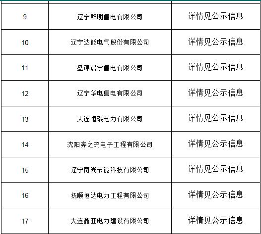 公示期間,任何單位和個人如有異議,可以實名通過來電、來信、來訪等方式向遼寧電力交易中心反映。本次公示售電公司目錄如下: