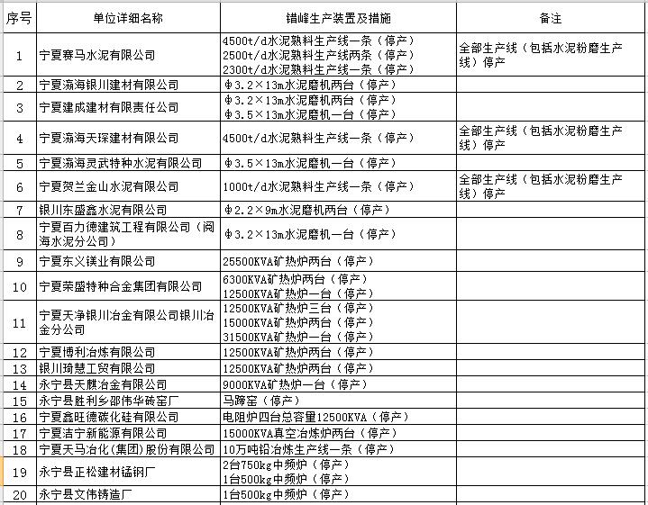 銀川市錯峰生產(chǎn)企業(yè)名單