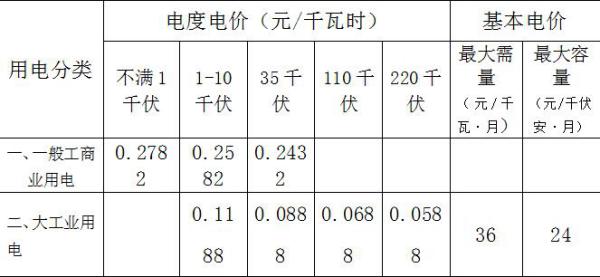 注:1、上表所列價(jià)格含增值稅、線損及交叉補(bǔ)貼,不含政府性基金及附加。
