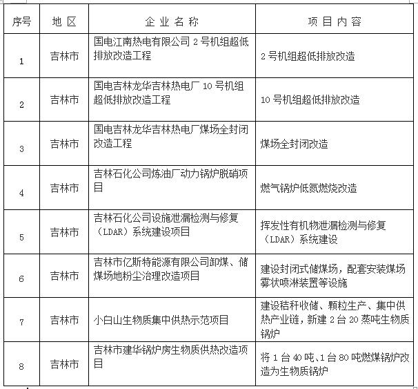 吉林市2017年工業(yè)大氣污染防治項目清單