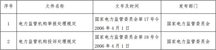 根據(jù)投訴舉報處理工作實際情況,并考慮到適用主體、調整對象均發(fā)生了變化,現(xiàn)決定宣布失效《電力監(jiān)管機構舉報處理規(guī)定》(國家電力監(jiān)管委員會令第17號)、《電力監(jiān)管機構投訴處理規(guī)定》(國家電力監(jiān)管委員會令第18號)。