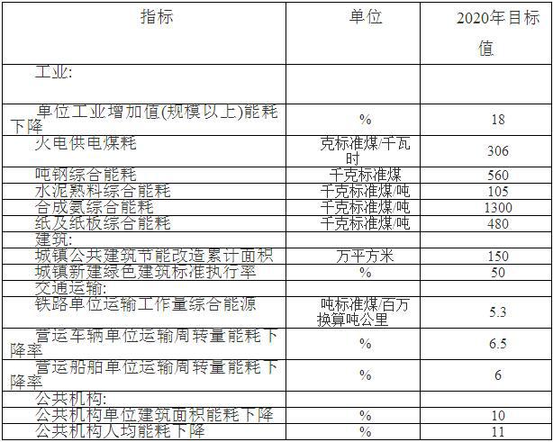 “十三五”主要行業(yè)和部門節(jié)能指標(biāo)