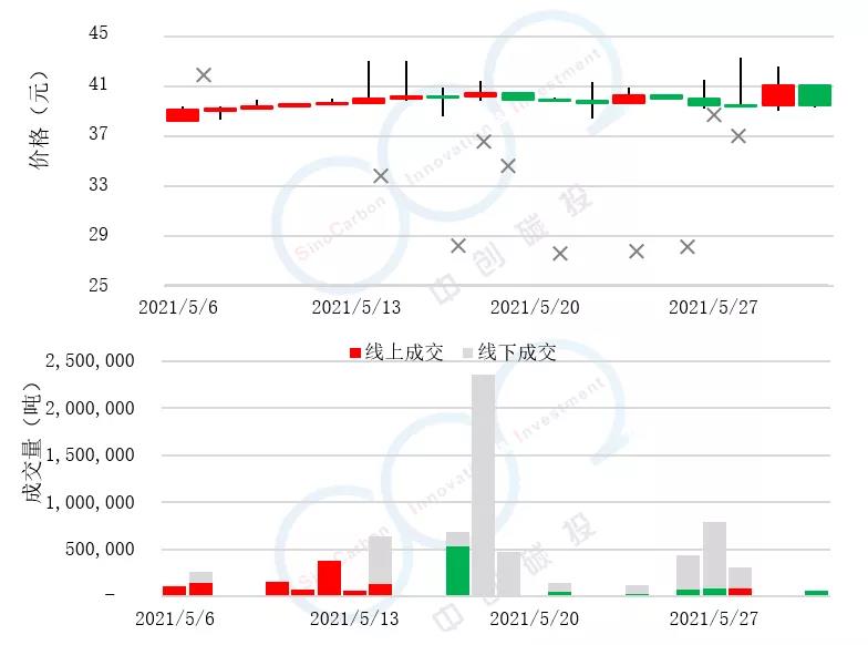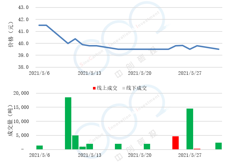 • 線上成交價(jià)最低為39.50元,最高為41.50元,平均碳價(jià)為39.93元。