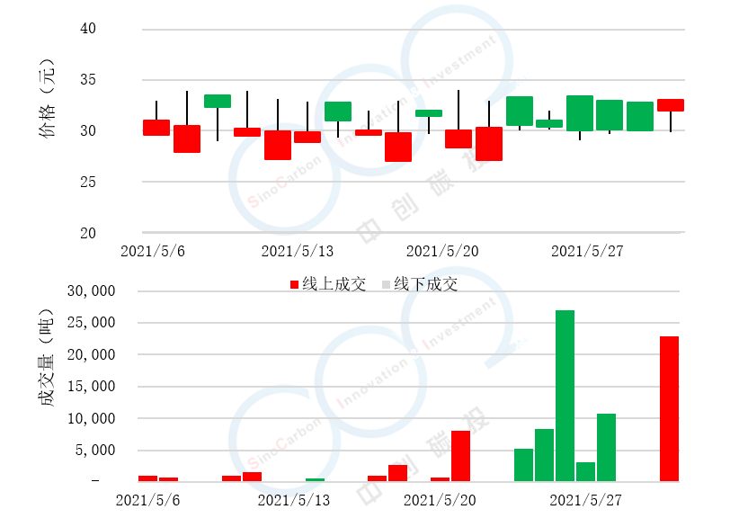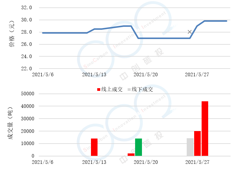 • 線上成交價(jià)最低為27.00元,最高為29.80元,平均碳價(jià)為29.00元。