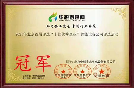 近日,2021年北京首屆評選“十佳優(yōu)秀企業(yè)”智能設(shè)備公司評選活動圓滿落幕。此次評選活動中北京中科宇杰節(jié)電設(shè)備有限公司摘得桂冠。