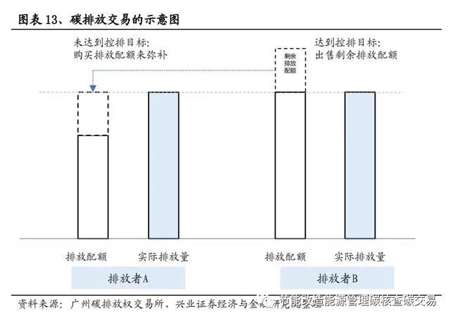 碳交易市場是由政府通過對能耗企業(yè)的控制排放而人為制造的市場。通常情況下,政府確定一個碳排放總額,并根據(jù)一定規(guī)則將碳排放配額分配至企業(yè)。如果未來企業(yè)排放高于配額,需要到市場上購買配額。與此同時,部分企業(yè)通過采用節(jié)能減排技術(shù),最終碳排放低于其獲得的配額,則可以通過碳交易市場出售多余配額。雙方一般通過碳排放交易所進行交易。