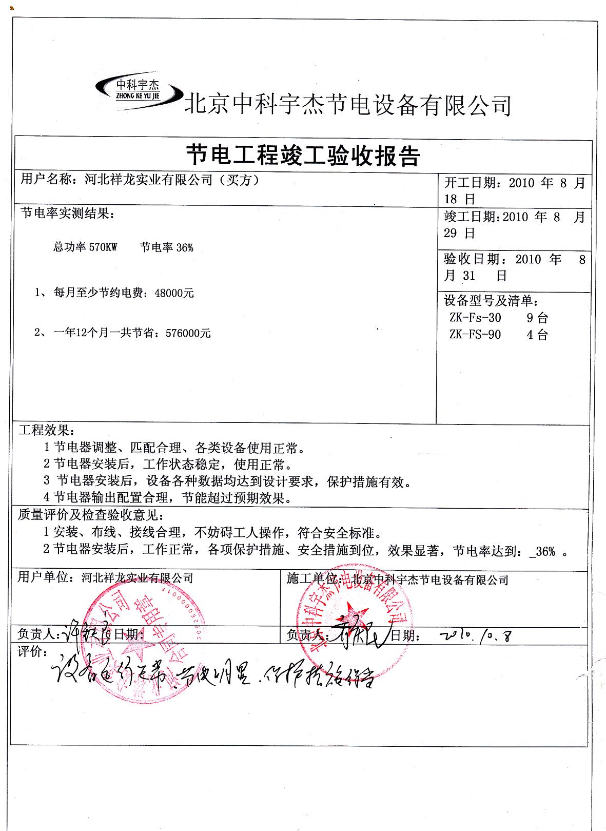 安裝調試驗收,節(jié)能效率達到36%,投資回報期一年半,按質保十年計算,此項節(jié)能工程能為祥龍實業(yè)帶來570萬以上人民幣的直接效益。