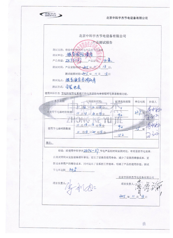 安裝調(diào)試并驗收后,通過現(xiàn)場讀表,顯示節(jié)電達到34%,節(jié)電效果明顯。按質(zhì)保十年計算,此項節(jié)能工程能為榆林市銀杏國際酒店帶來四百萬以上人民幣的直接經(jīng)濟效益。