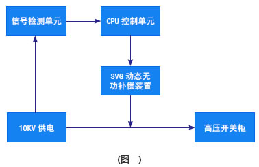 由圖二所示,在10KV高壓開關(guān)柜進(jìn)線處并聯(lián)安裝SVG動(dòng)態(tài)無(wú)功補(bǔ)償裝置,基本原理是利用可關(guān)斷大功率電力電子器件(如IGBT)組成自換相橋式電路,經(jīng)過(guò)電抗器并聯(lián)在電網(wǎng)上,適當(dāng)?shù)卣{(diào)節(jié)橋式電路交流側(cè)輸出電壓的幅值和相位,或者直接控制其交流側(cè)電流,就可以使該電路吸收或者發(fā)出滿足要求的無(wú)功電流,實(shí)現(xiàn)動(dòng)態(tài)無(wú)功補(bǔ)償?shù)哪康摹?/td>